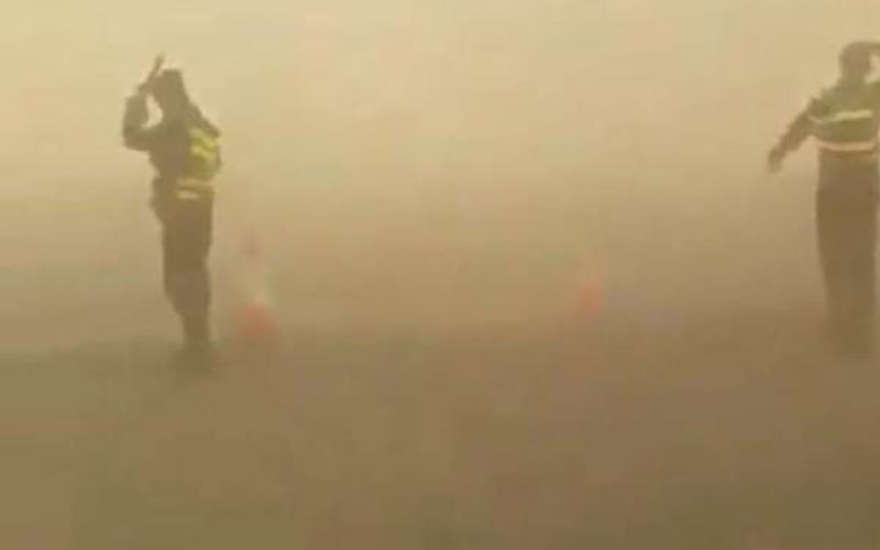 اغلاق على الطريق الصحراوي بسبب الغبار