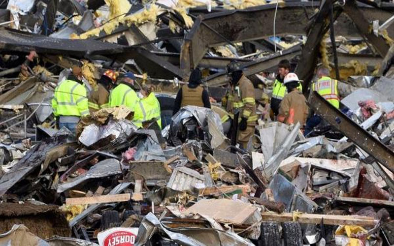 وبذل مئات المسؤولين جهودا طوال الليل حتى ساعة مبكرة السبت لإنقاذ الموظفين في المنشأة في إيلينوي والتي سُوي ثلثها بالأرض. وكان الموظفون في دوام ليلي لتسليم طلبيات قبل أعياد الميلاد.