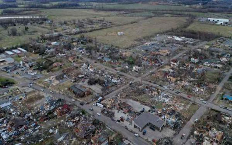 وطلب حاكم ولاية كنتاكي آندي بشير رسميا هذا الإعلان الأحد بعد أن دمرت الأعاصير مدينة مايفيلد الصغيرة ومصنعا للشموع.
