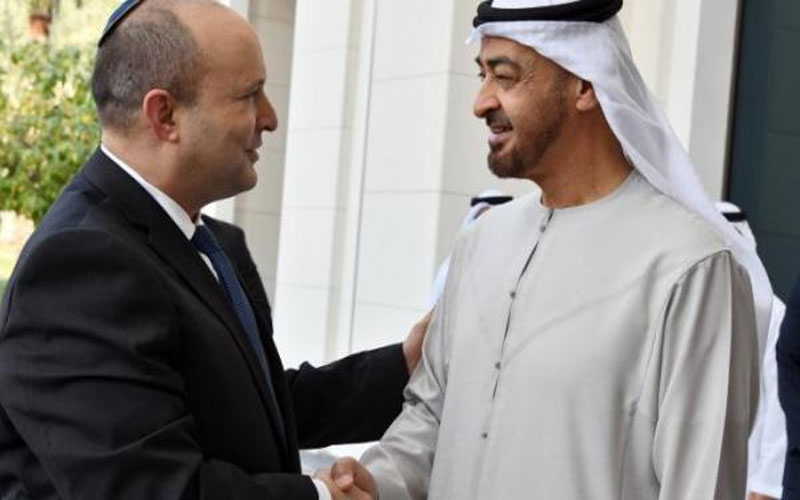 وبحث ولي عهد أبوظبي الشيخ محمد بن زايد ورئيس الوزراء الإسرائيلي نفتالي بينيت علاقات التعاون الثنائي.