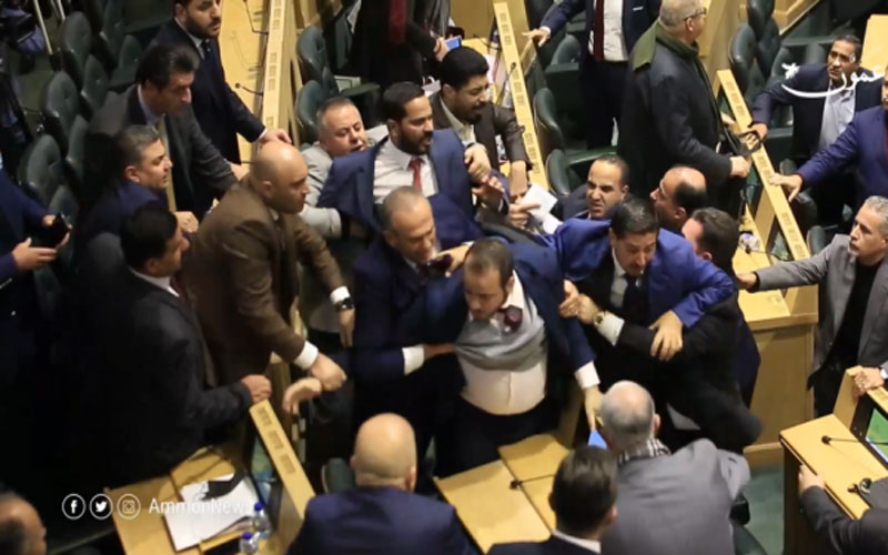 وكانت اندلعت مشاجرة بالايدي تحت قبة البرلمان بعد طرد الدغمي للنائب سليمان ابو يحيى قائلا: اخرس واطلع برا"، قبل رفع الجلسة لمدة نصف ساعة.