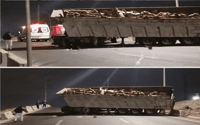 نيسان ـ اعلنت دائرة السير عن وقوع حادث تدهور لمركبة (تريلا محملة بقطع حديدية) على طريق عمان - الزرقاء/ اعلى جسر الجندي أدى الى اغلاق الحركة المرورية باتجاه الزرقاء بالكامل