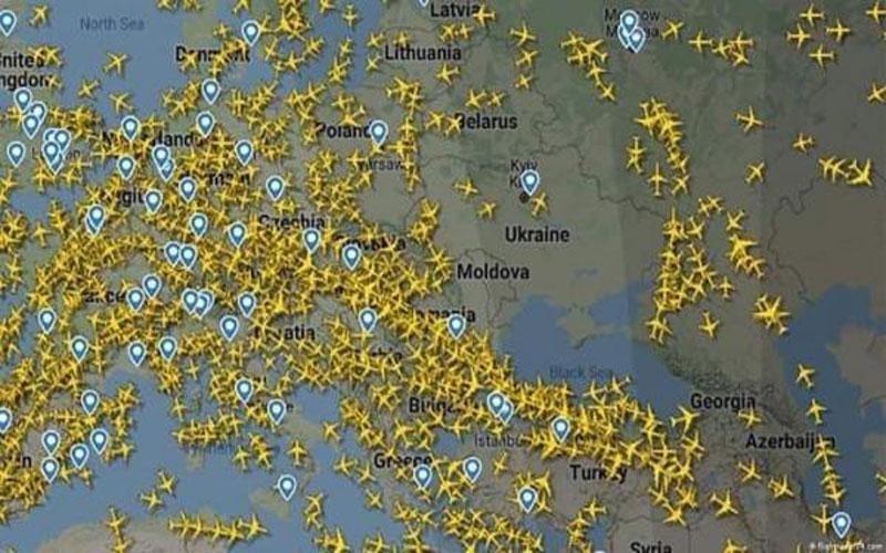 نيسان ـ أظهرت خرائط تتبع الطيران المدني تجنب الطائرات للمجال الجوي فوق أوكرانيا والبحر الأسود، وسط تصاعد التوترات في الأزمة بين روسيا وأوكرانيا.