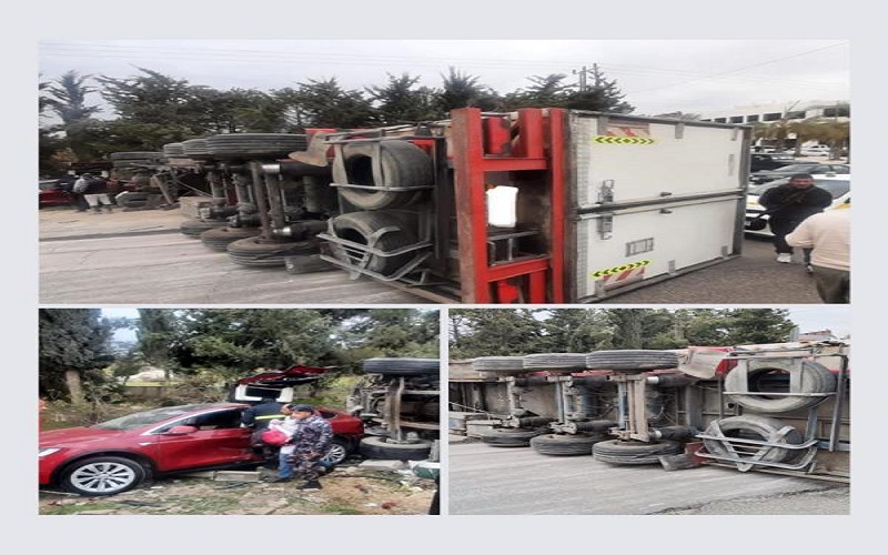 نيسان ـ أدى حادث مركبة شحن (تريلا) واربع مركبات اخرى في ناعور بعد اشارة الدخان باتجاه العدسية الى اغلاق السير وفق إدارة السير.