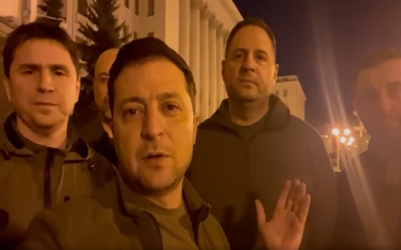 نيسان ـ أكّد الرئيس الأوكراني فولوديمير زيلينسكي في شريط مصور الجمعة، ظهر فيه مع مساعديه أمام مقر الرئاسة، أنه موجود في كييف "للدفاع" عن أوكرانيا رغم تقدم القوات الروسية.