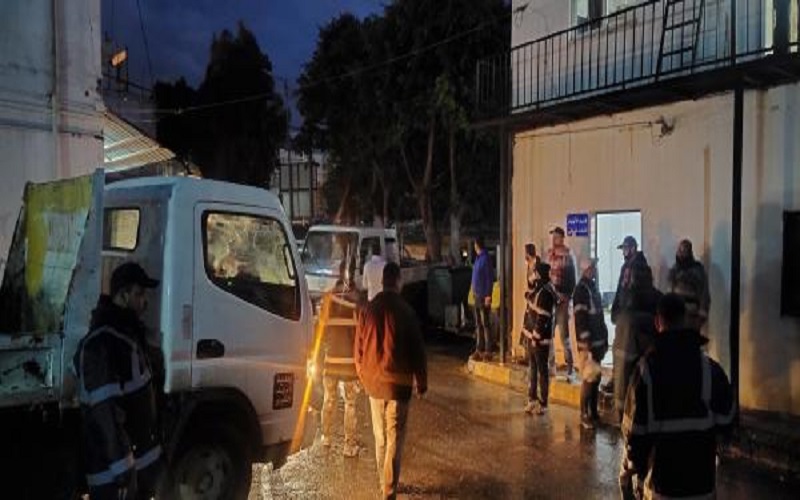 بلدية إربد تتعامل مع حالات انسداد بوحدات تصريف المياه