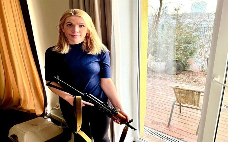 نيسان ـ نشرت النائبة في البرلمان الأوكراني، كيرا روديك، صورة لها عبر حسابها على موقع تويتر، من داخل منزلها وهي تحمل سلاح الكلاشينكوف، وتؤكد استعدادها للانضمام لصفوف المقاتلين للدفاع عن بلادها ضد الغزو الروسي.