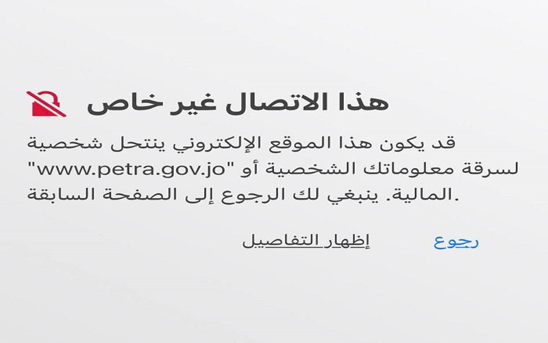 وعند دخول الموقع ، يتفاجأ الزائر بظهور رسالة مفادها " هذا الاتصال غير خاص".