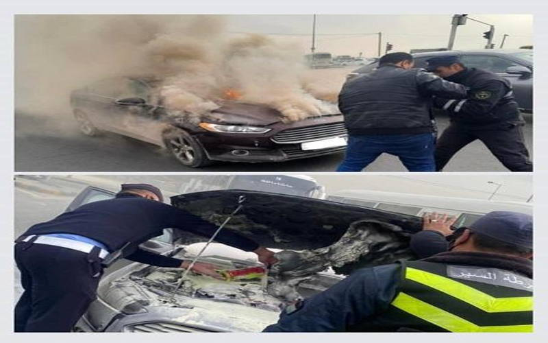 احتراق مركبة قرب إشارات مستشفى الملكة علياء