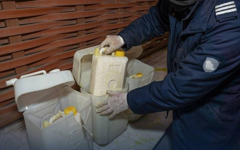 وأوضحت الهيئة أنه أثناء اتخاذ الإجراءات الجمركية لركاب إحدى الحافلات القادمة إلى السعودية عبر منفذ الحديثة عُثر على 141831 حبة كبتاجون في أمتعة راكبَين، وذلك بوضع الحبوب داخل جالونات بلاستيكية، تحتوي على زيت زيتون، حيث جرى إخفاء الحبوب بطريقة فنية داخل الجالونات.