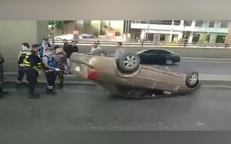 تدهور مركبة عند نفق الصحافة في عمان