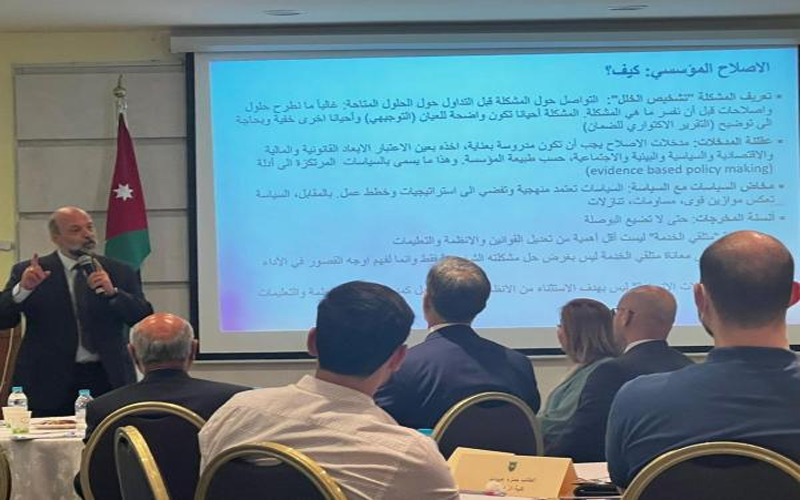 وشدد على أن "المؤسسات المتعلمة هي التي تتعلم من تجاربها وأخطائها، وتراكم خبراتها، اعتمادا على الإفصاح الدائم والتواصل المستمر مع أصحاب العلاقة، وهي التي تخضع للمساءلة لتتمكن من تصحيح أخطائها والتعلم من التجارب السابقة" وعند اتخاذ أي قرار لا بد من العمل على تشخيص الخلل تشخيصا سليما، ثم دراسة أبعاد القرار القانونية والاجتماعية والاقتصادية في حال تطبيقه، واعتماد آليات عقلنة المدخلات بالإضافة إلى أنسنه المخرجات.
