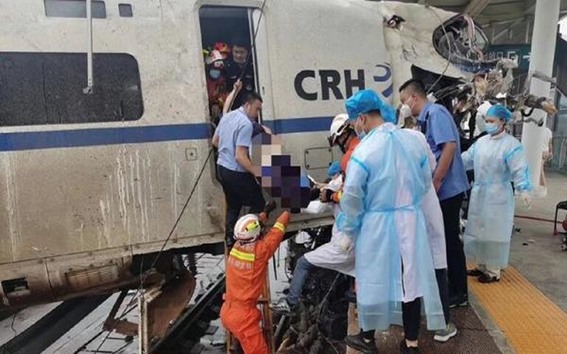 وذكرت صحيفة "غلوبال تايمز" أن اثنتين من عربات القطار خرجتا عن السكة في إحدى المحطات بسبب انهيار طيني، مشيرة إلى أن القتيل هو سائق القطار، بينما أصيب مضيف و7 ركاب بجروح غير خطيرة.