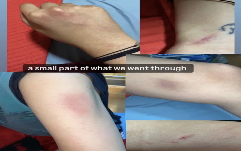 وظهر في الصور التي نشرتها الفتاة، وجوه 3 شبان تدعي أنهم من قاموا بالاعتداء عليها وصديقاتها دون وجود لفيديو يوثق لحظة الاعتداء، مكتفية بنشر صور لأجزاء من أجسادهن يظهر فيها تعرضهن للاعتداء الجسدي.