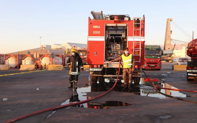45 إصابة بين مرتبات الأمن العام بعد سقوط صهريج محمل بغاز سام بميناء العقبة