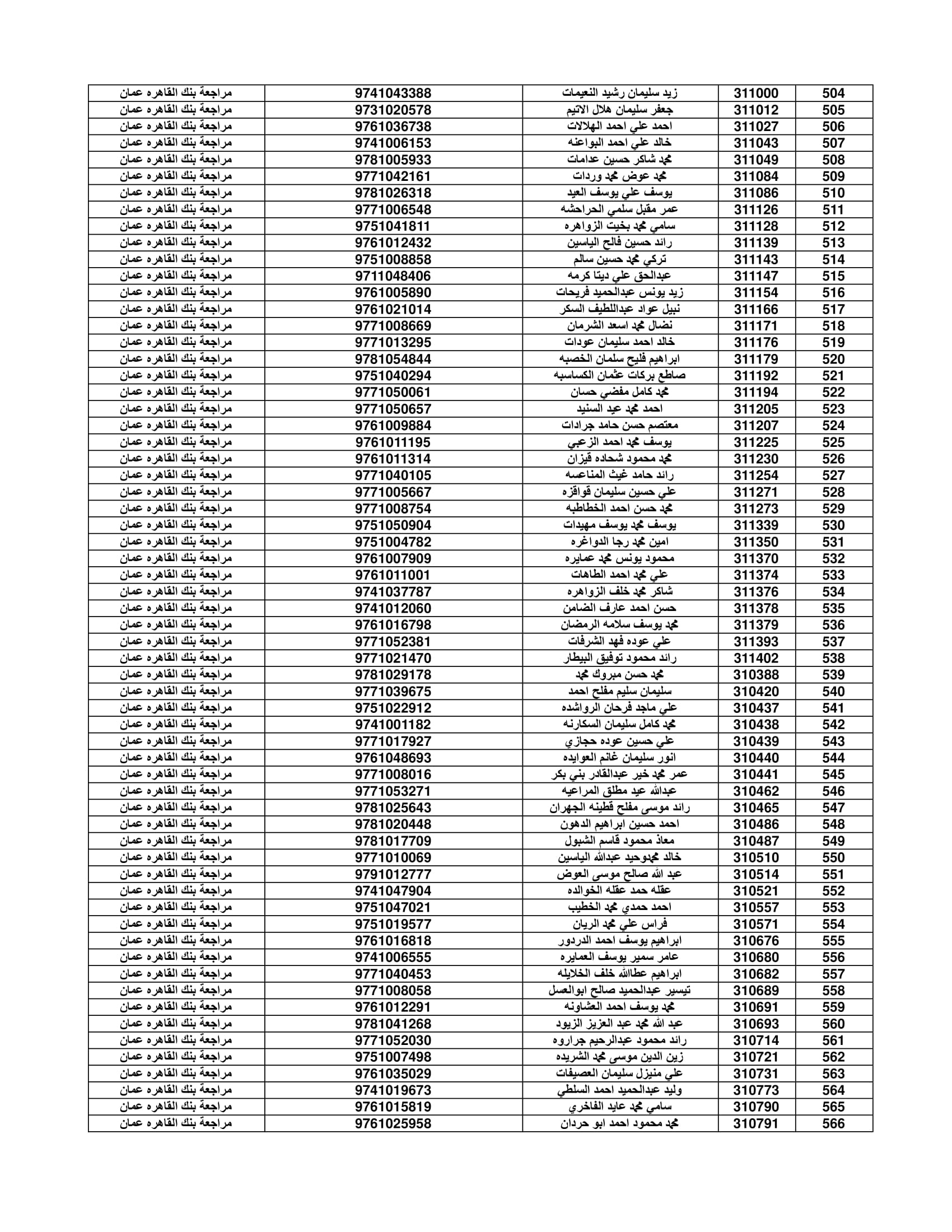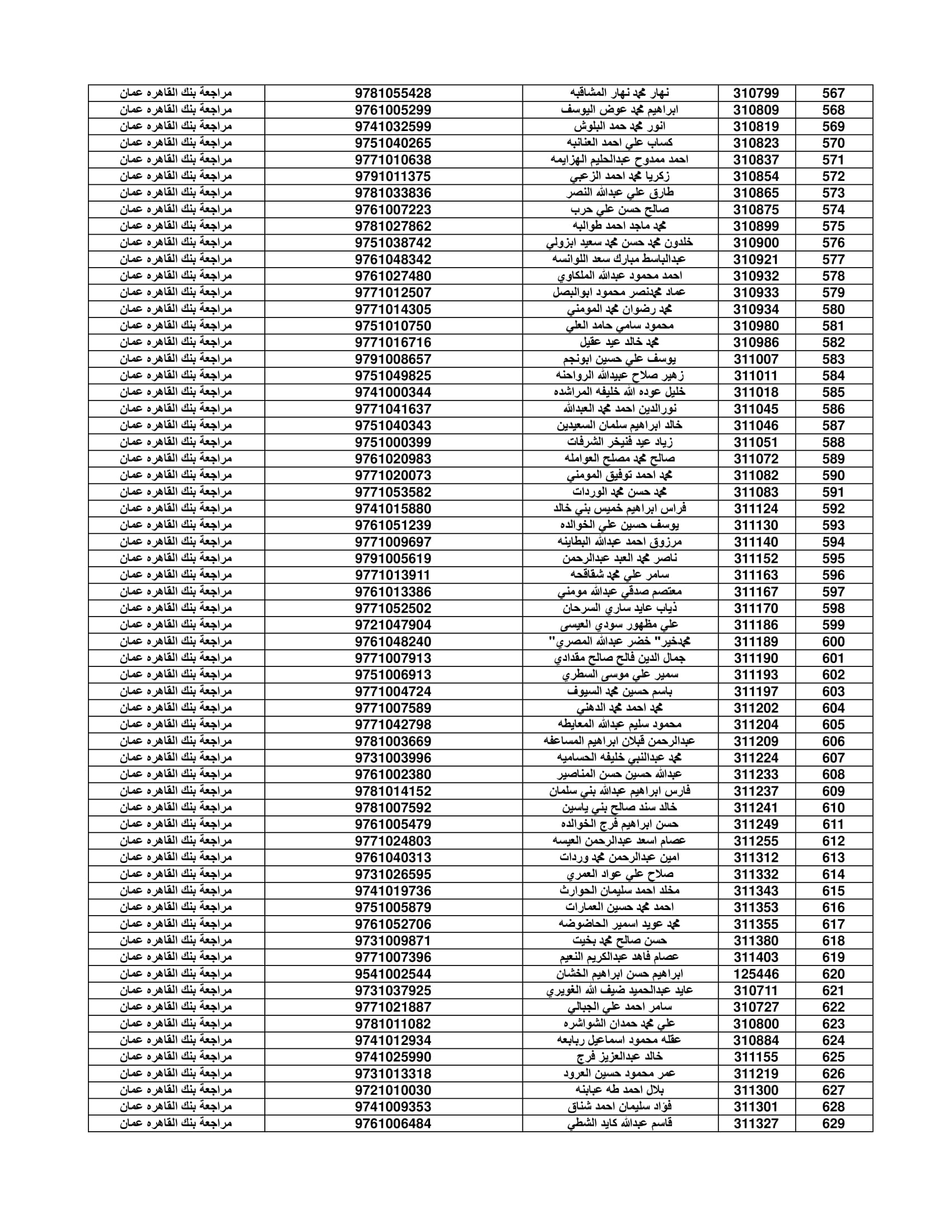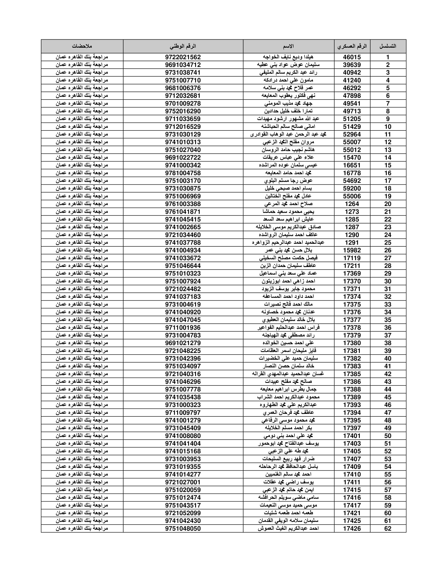 وعلى المستفيدين مراجعة بنك القاهرة عمان وكافة فروعه اعتباراً من صباح يوم الأثنين 4/7/2022 لاستلام قيمة القرض.