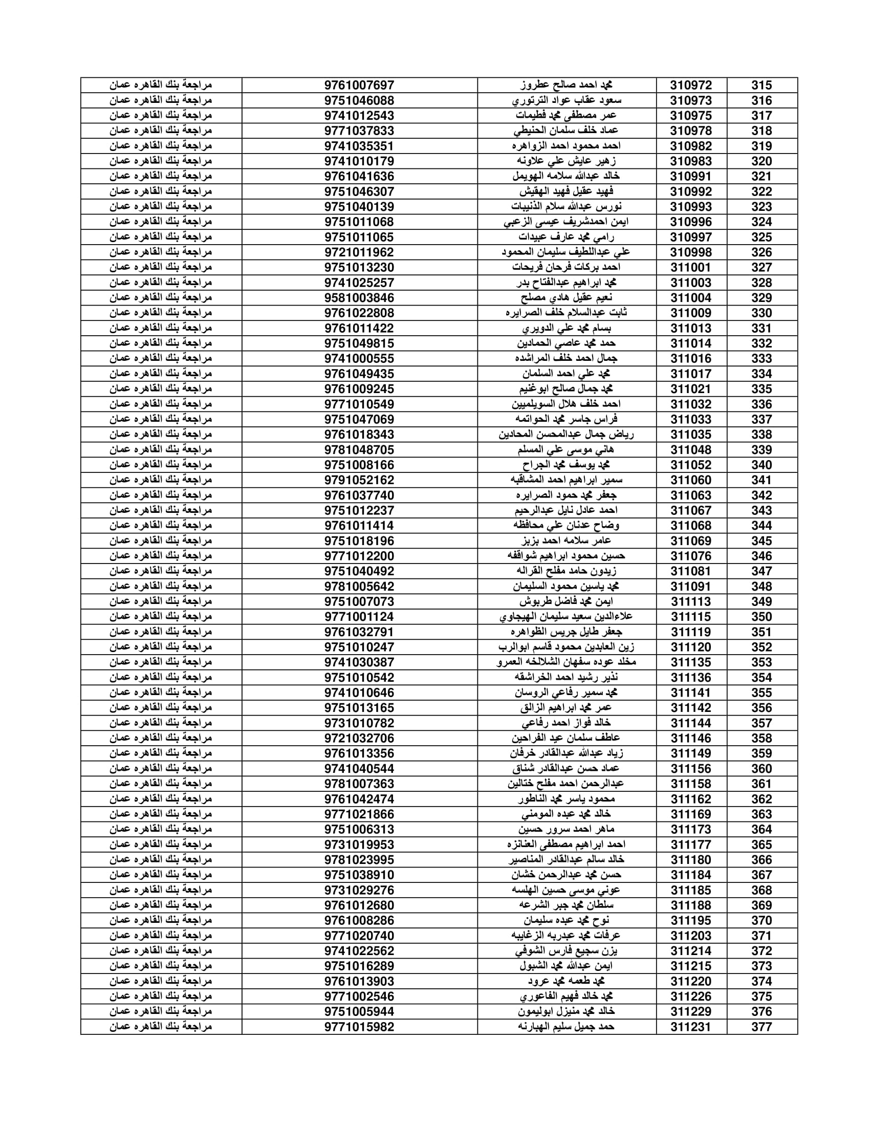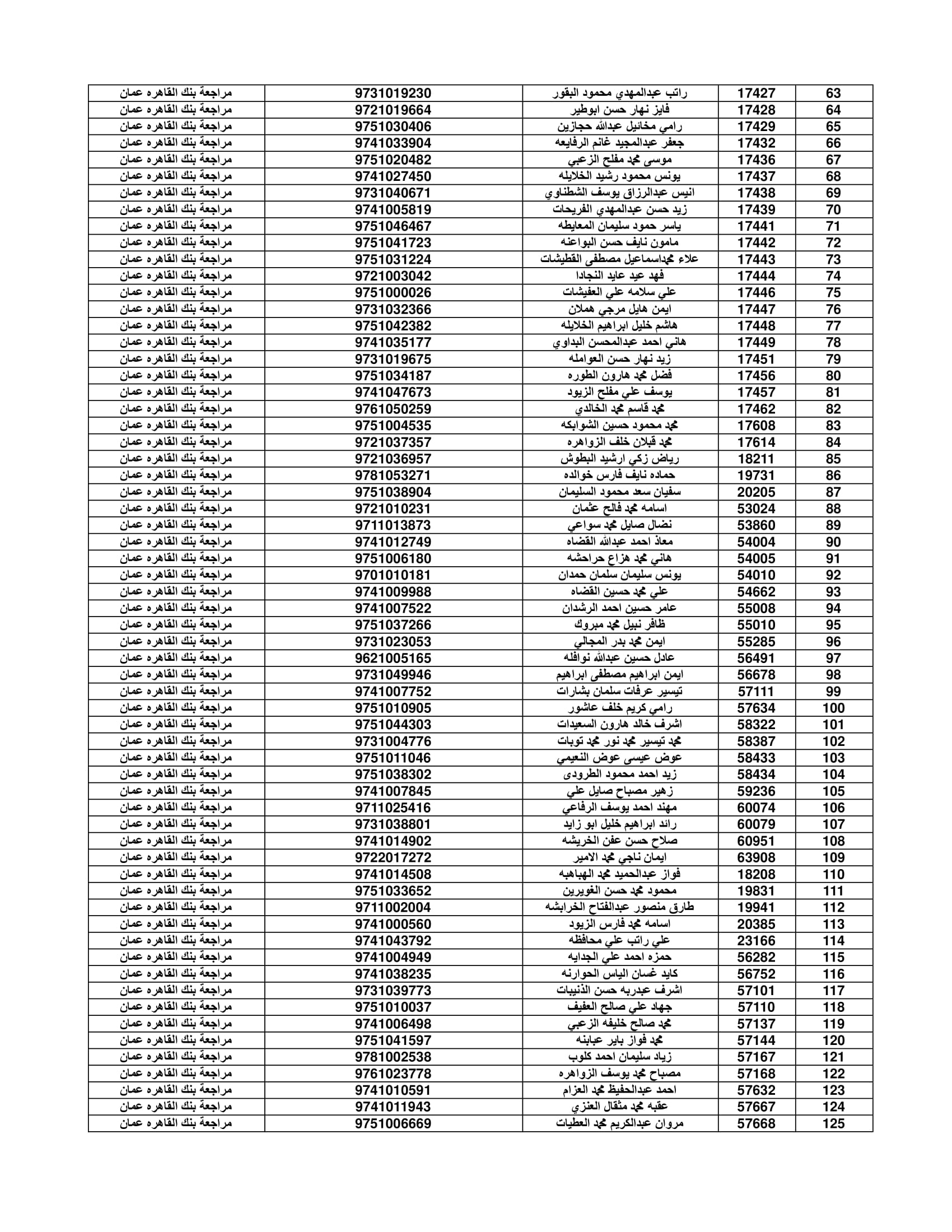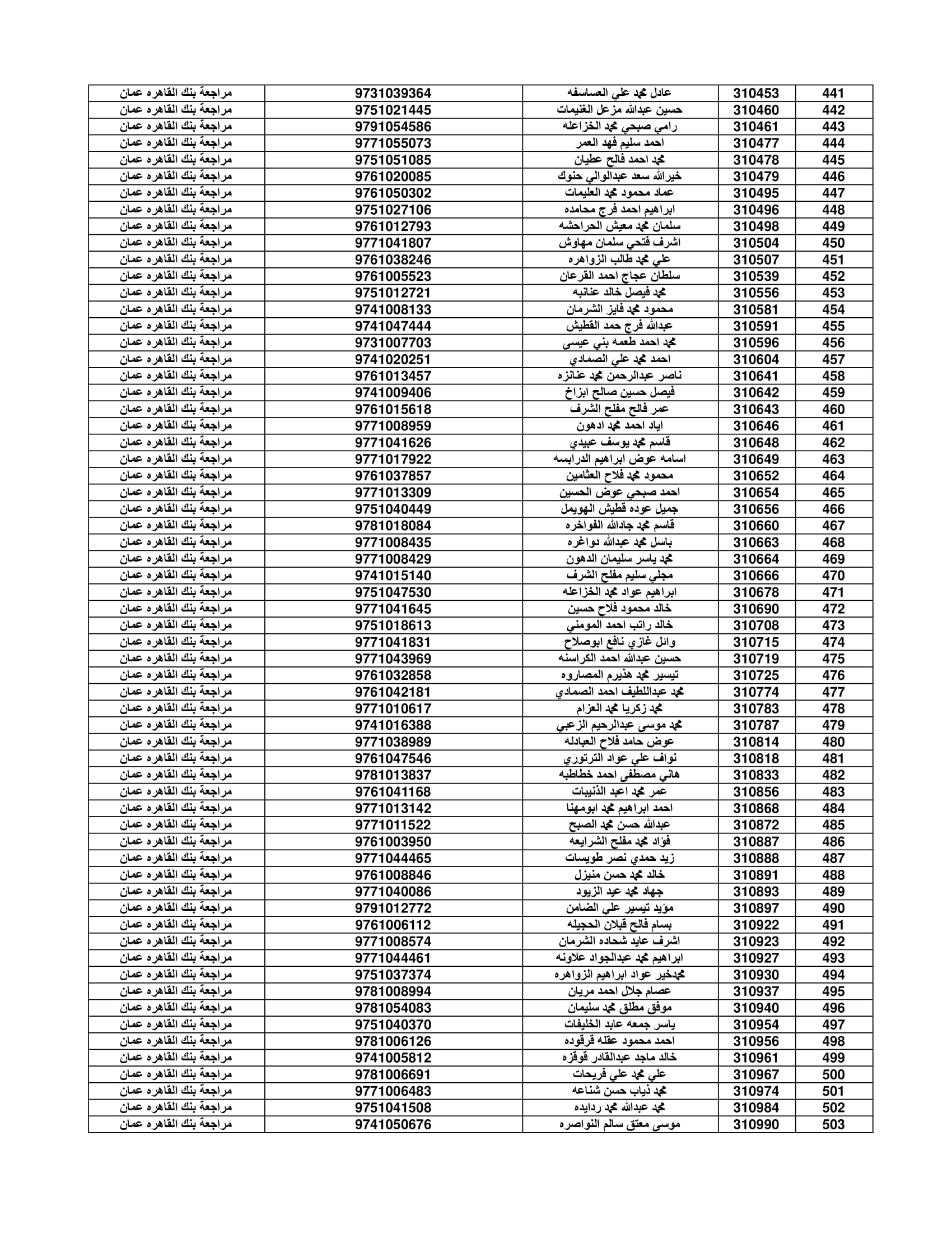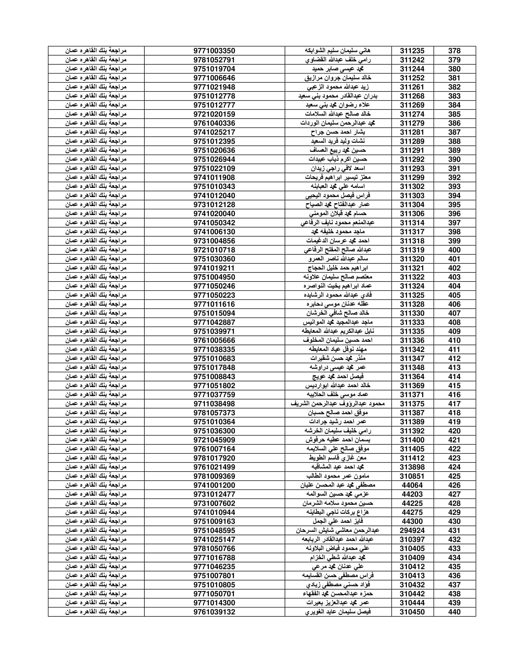 وعلى المستفيدين مراجعة بنك القاهرة عمان وكافة فروعه اعتباراً من صباح يوم الأثنين 4/7/2022 لاستلام قيمة القرض.