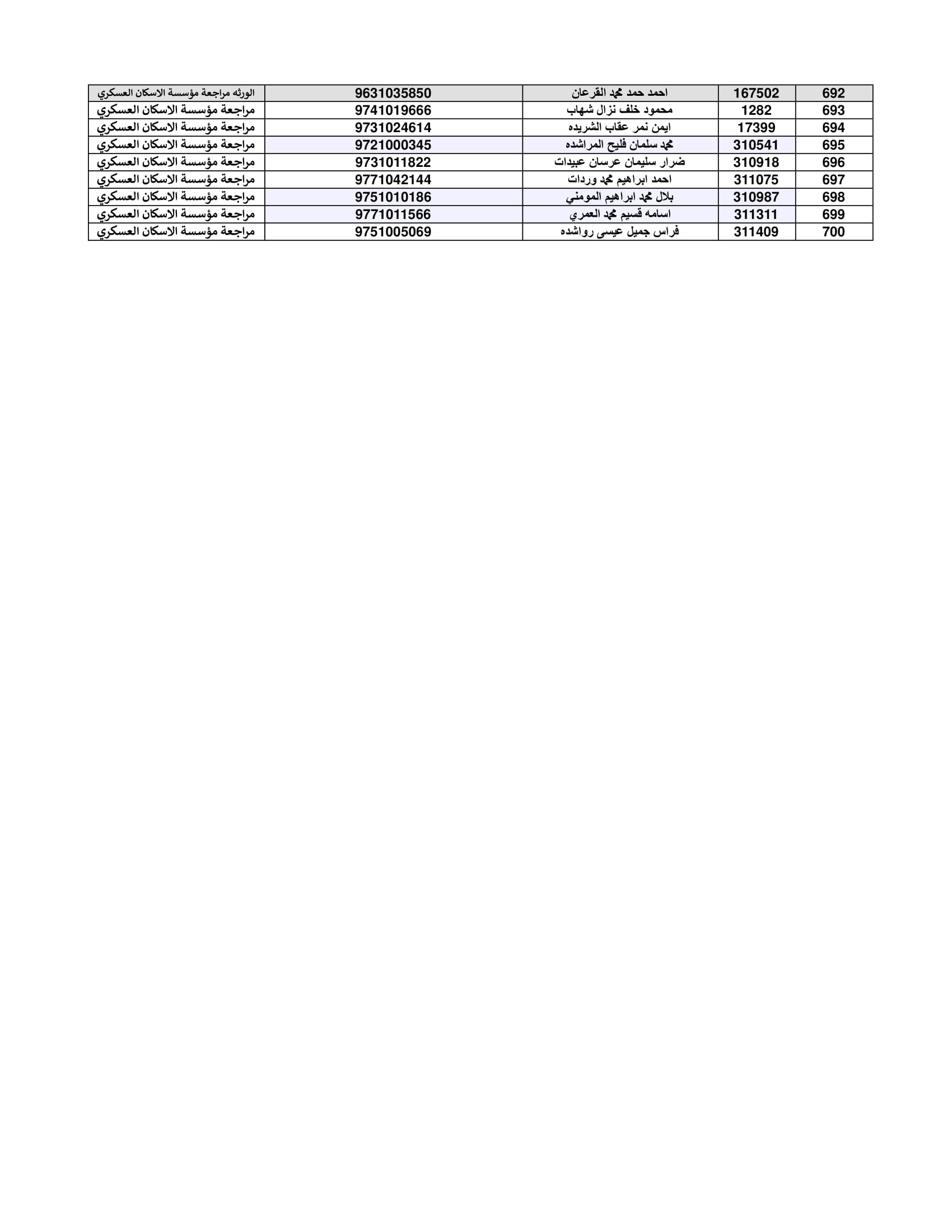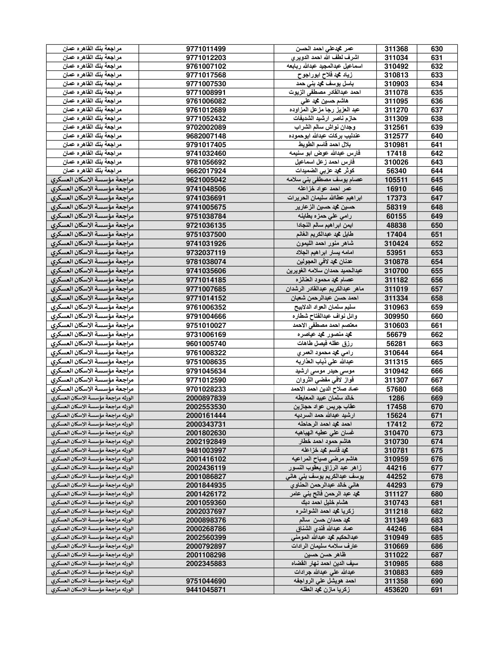 نيسان ـ أعلنت القيادة العامة للقوات المسلحة الأردنية – الجيش العربي/ مديرية مؤسسة الإسكان والأشغال العسكرية، كشفا بأسماء المستفيدين لقرض صندوق الإسكان لدفعة شهر تموز لعام 2022.