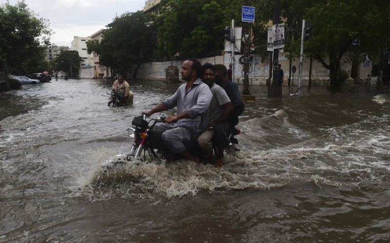 وهطلت أمطار غزيرة على البلاد في الأيام القليلة الماضية؛ مما تسبب في إغراق مساحات شاسعة من مدينة كراتشي، كبرى مدن باكستان، بالمياه.