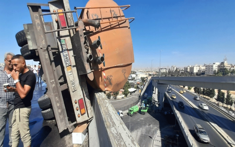 نيسان ـ حولت قضية وقوع حادث تدهور لصهريج خدمات (نضح) على الجسر العلوي من جهة شارع الصحافة باتجاه المدينة الرياضية، إلى مدعي عام عمان، والذي قرر إسناد عدد من الجرائم للمشتكى عليه، وتقرر توقيف المشتكى عليه مدة سبعة أيام قابله للتجديد.