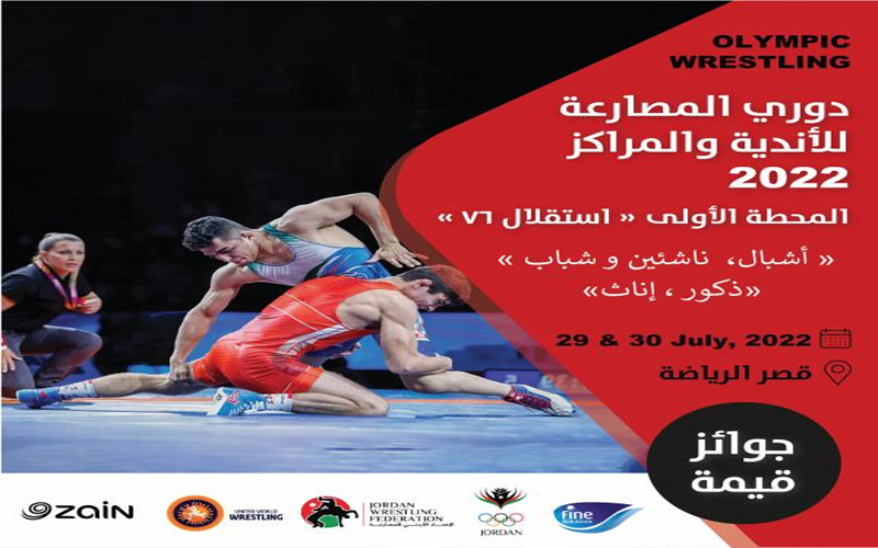 نيسان ـ يواصل الاتحاد الأردني للمصارعة تحضيراته لدوري المصارعة للأندية والمراكز ٢٠٢٢ - المحطة الأولى "استقلال ٧٦"، الذي سيقام يومي الجمعة والسبت ٢٩ و ٣٠ تموز الجاري، بدعم من شركة زين الأردن وشركة فاين.