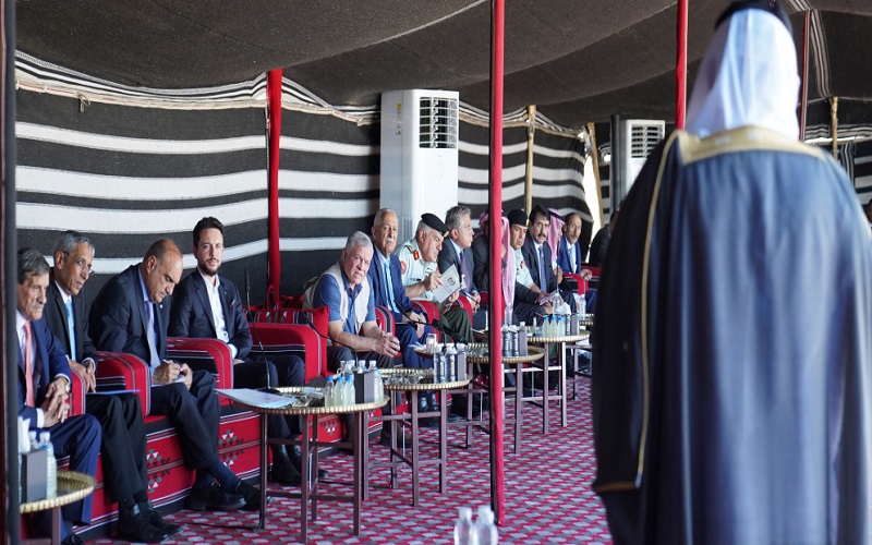 والتقى جلالة الملك عبدالله الثاني، الأربعاء، بحضور سمو الأمير الحسين بن عبدالله الثاني، ولي العهد، شيوخا ووجهاء وممثلين عن المجتمع المحلي في البادية الشمالية.