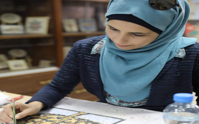 نُسيبة ذات الإعاقة السمعية تحترف فن الفسيفساء بتشكيلاته الأخاذة