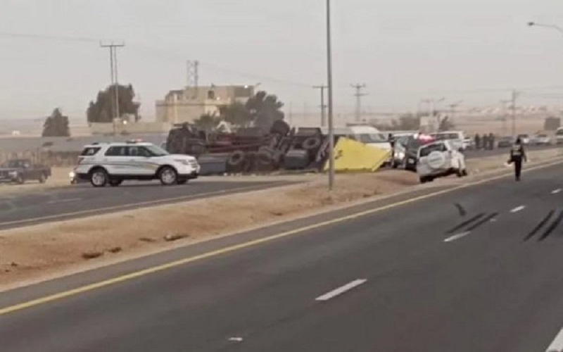 وفاة سائق مركبة شحن بحادث تدهور على الطريق الصحراوي