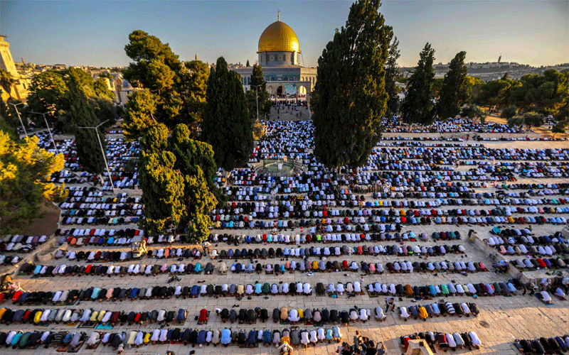 وأم المسجد الأقصى أعداد كبيرة من المواطنين وامتلأت المصليات بالمصلين بينهم عائلات ضمت نساء وأطفال.