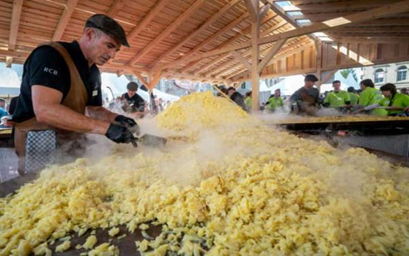 نيسان ـ سُجِّل رقم قياسي جديد لفطائر روستي التقليدية السويسرية المصنوعة من البطاطا، إذ بات الطبق الأكبر في العالم منها هو ذلك الذي أُعدَّ الاثنين في مقلاة يبلغ حجمها 13,7 متراً مربعاً، على ما أعلن اتحاد المزارعين السويسريين في عيده الـ125.