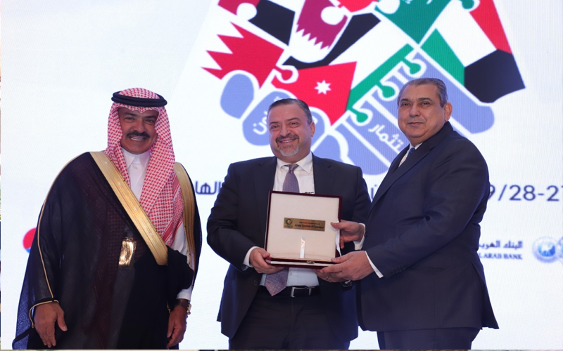 هذا وقدم الاستاذ نائل رجا الكباريتي رئيس غرفة تجارة الأردن والاستاذ عجلان بن عبدالعزيز العجلان رئيس مجلس إدارة اتحاد غرف مجلس التعاون الخليجي درعاً تكريمياً للسيد إياد العسلي مدير عام البنك العربي الإسلامي تقديراً لمشاركة ودعم البنك لفعاليات المنتدى ومبادراته الدائمة بدعم مختلف نشاطات غرفة تجارة الأردن وبالذات هذا المنتدى الذي سيساهم في تطوير العلاقات الاقتصادية والتجارية الخليجية والأردنية.