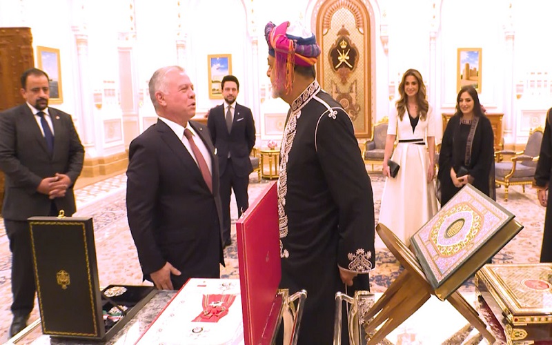 نيسان ـ منح جلالة الملك عبدالله الثاني جلالة السلطان هيثم بن طارق سلطان عُمان، الثلاثاء، وسام النهضة المرصع، تقديرا لجلالته وتجسيدا للعلاقات التاريخية المتميزة التي تربط البلدين، وبمناسبة زيارة جلالة الملك الرسمية إلى سلطنة عُمان.