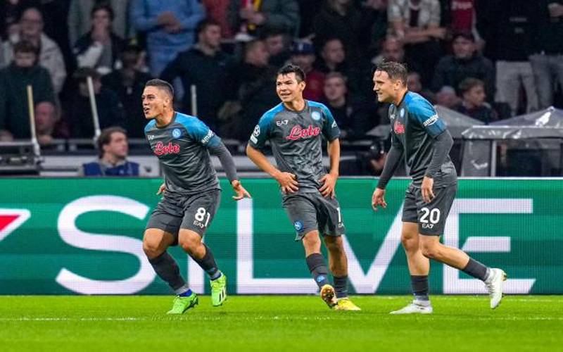 نيسان ـ حافظ نابولي الإيطالي على العلامة الكاملة في دوري أبطال أوروبا، الليلة، بعدما قلب تأخره أمام مضيفه أياكس أمستردام الهولندي إلى فوز عريض 6 /1 في الجولة الثالثة من مباريات المجموعة الأولى.