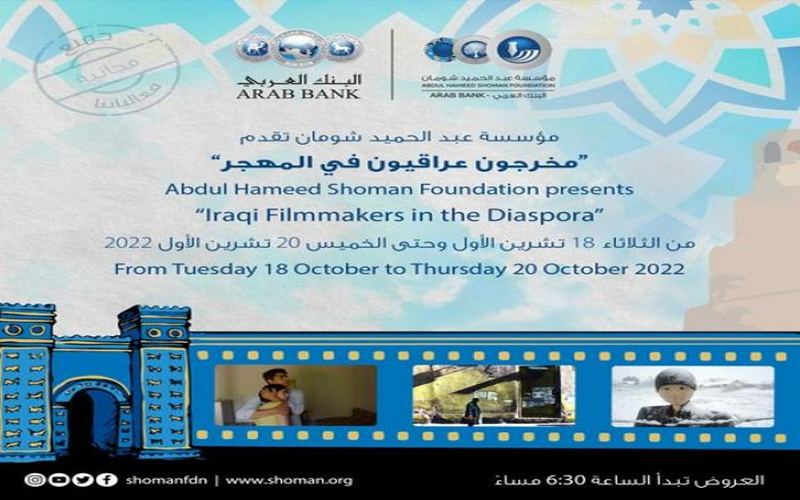 نيسان ـ ينطلق يوم بعد غد الثلاثاء في مؤسسة عبد الحميد شومان، أسبوع أفلام بعنوان "مخرجون عراقيون في المهجر"، والذي يستمر حتى يوم الخميس المقبل، وذلك في مقر المؤسسة بجبل عمان، حيث يبدأ عرض الأفلام في تمام الساعة السادسة والنصف مساء.