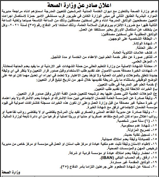 بالأسماء..مدعوون للتعيين في الصحة