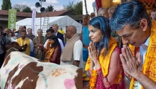 نيسان ـ وثق مقطع فيديو متداول ممارسة رئيس الوزراء في بريطانيا ريشي سوناك، وزوجته أكشاتا مورثي، لطقوس العبادة الهندوسية، بجانب بقرة. وأظهر الفيديو، سوناك وزوجته وهما يرتديان الزي الهندي، ويقفان بجانب البقرة، ويقومان بإطعام البقرة بأنفسهم، وسط أجواء خاصة.