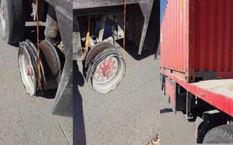 نيسان ـ ضبط العاملون في ادارة الدوريات الخارجية اليوم الاثنين، مركبة شحن محملة بحاوية على طريق القويرة /العقبة ، كانت تسير على الشارع العام واحد اطاراتها بدون كاوتشوك، اضافة الى مخالفة عدم تثبيت الحمولة بالشكل السليم.