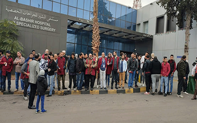 نيسان ـ اعتصم العشرات من موظفي شركة خاصة والذين يعملون في قسم الخدمات بمستشفى البشير بسبب تأخير رواتبهم وعدم إدراجها في البنك.