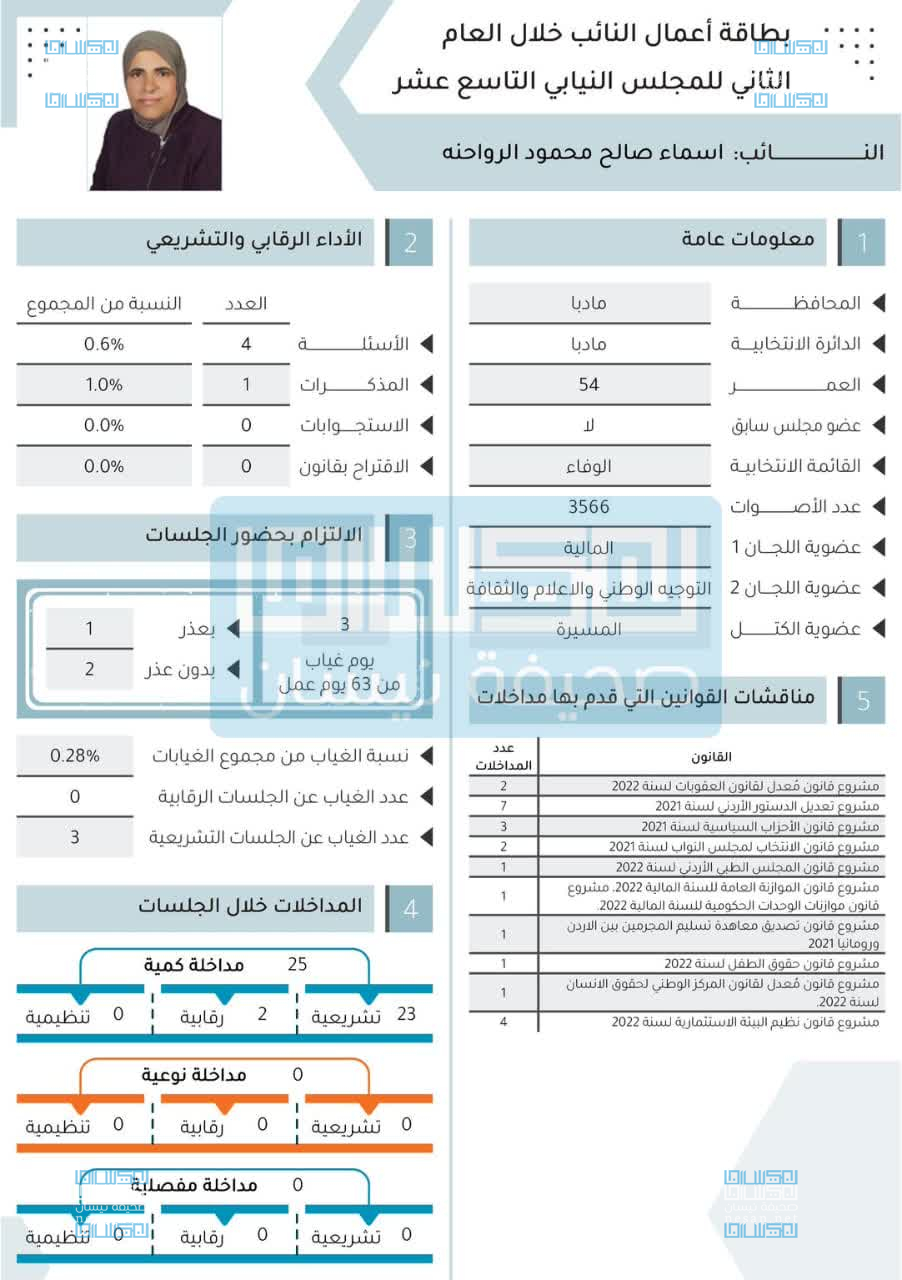 هكذا كان أداء النائب أسماء الرواحنة في عام المجلس الثاني