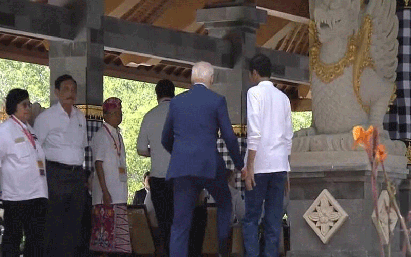 وكان الزعيمان يزوران غابة "تامان هوتان رايا المنغروف" في بالي عندما تعثر بايدن على الدرج. ومع ذلك، تم إنقاذ الرئيس الأمريكي من السقوط من قبل الرئيس ويدودو، الذي تمكن من الإمساك به في الوقت المناسب.
