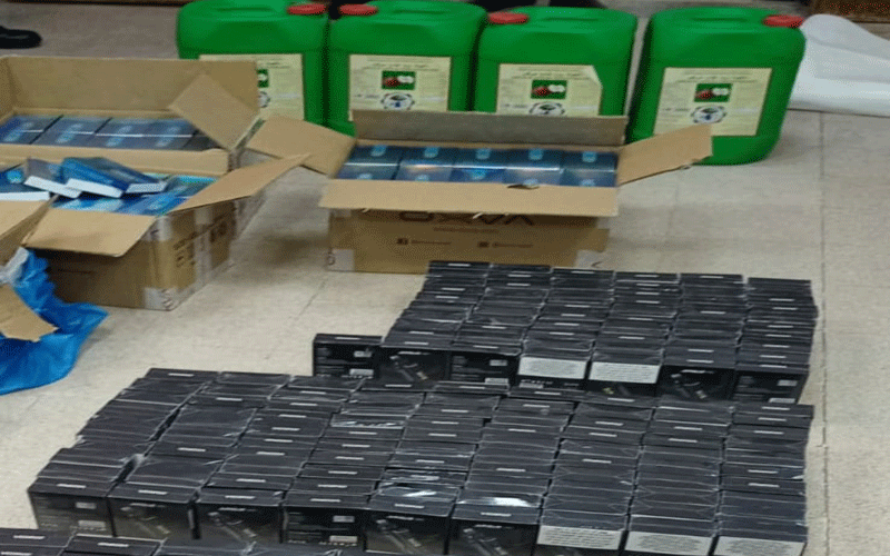 وأوضح الناطق الإعلامي أنه وأثناء قدوم حافلة تقل عدداً من المعتمرين في مركز جمرك المدورة وبعد التفتيش الدقيق الذي خضعت له الحافلة تم ضبط هذه الكميات من السجائر والنكهات وتم إتخاذ الإجراءات القانونية والجمركية المتبعة بشأنها.
