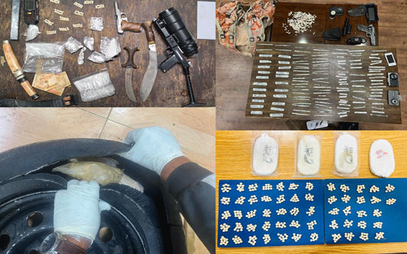 ضبط خلال تلك القضايا 23 كغم من مادة الحشيش المخدرة، و مليون حبة من حبوب الكبتاجون المخدرة وألف حبة من المستحضرات الطبية، و 1.750 غرام من مادة الكريستال المخدرة ، و 150 غراما من مادة الكوكايين المخدرة و مجموعة أشتال من مادة الماريجوانا ومجموعة من الأسلحة النارية