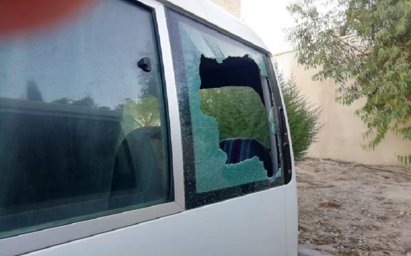 تعرض حافلات جامعة الطفيلة للرشق بالحجارة (صور)
