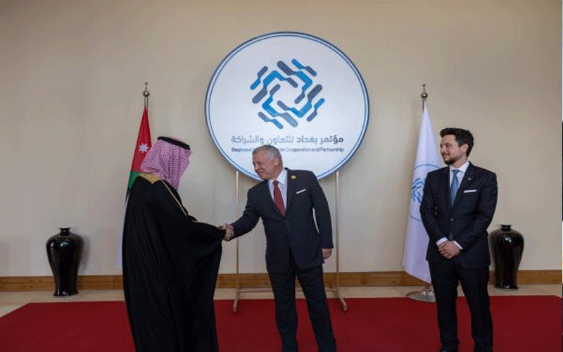نيسان ـ التقى جلالة الملك عبدالله الثاني، الثلاثاء، وزير الخارجية السعودي سمو الأمير فيصل بن فرحان، على هامش انعقاد الدورة الثانية لمؤتمر بغداد للتعاون والشراكة.