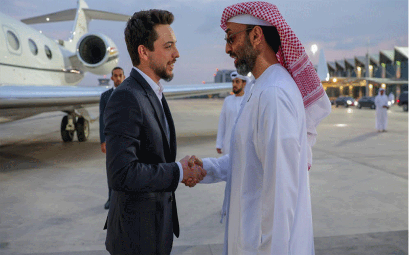 وكان في استقبال الامير ، لدى وصوله مطار البطين في العاصمة أبوظبي، الشيخ طحنون بن زايد آل نهيان، مستشار الأمن الوطني، ورئيس ديوان المحاسبة حميد أبو شبص. كما كان في الاستقبال السفير الأردني في أبوظبي نصار الحباشنة، وأركان السفارة.