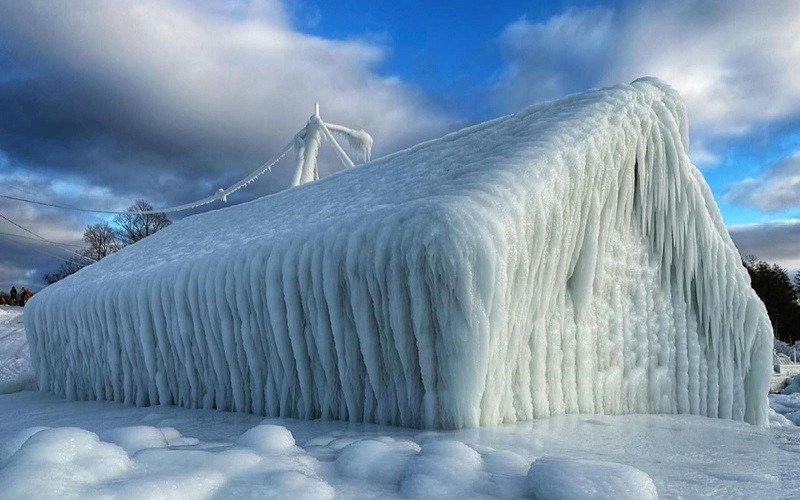 عاصفة ثلجية تحوّل متجراً إلى صخرة جليدية