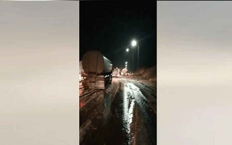 ووفق فيديو قصير وثقه أحد السائقين أدت حالة عدم الاستقرار الجوي والأمطار الغزيرة إلى حدوث انهيار طيني، متسببا بتوقف حركة مرور الشاحنات.