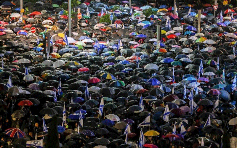 نيسان ـ هددت المعارضة الإسرائيلية بالبدء بحالة من العصيان المدني وشلّ الاقتصاد بعد ليلة شهدت تظاهرات عارمة في مناطق مختلفة من الكيان وخاصة في ميدان "المنصة" وسط "تل أبيب"، احتجاجاً على خطة الحكومة اليمينية لإحداث تغييرات جوهرية في النظام القضائي.