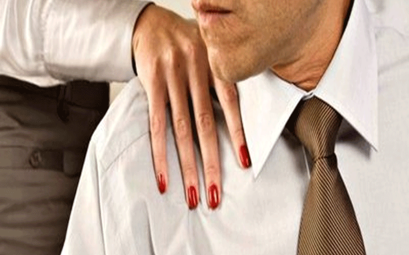 بعدها استغلت الموظفة ضعف وكبر سن المشتكي بالتحرش بشكل فاضح بصاحب المجمع، وفي تلك الأثناء دخل صاحب المكتب، وقام بتهديد الموظفة بأنه سيقوم بإبلاغ والدها، وطلب من المشتكي أن يقوم بإعطائها مبلغ عشرة دنانير، ثم طلب منه أن يزيد هذا المبلغ إلى ثلاثين ديناراً، وقام بإعطاء المشتكي قيمة إيجار الشهرين المستحقين، وغادر المشتكي.