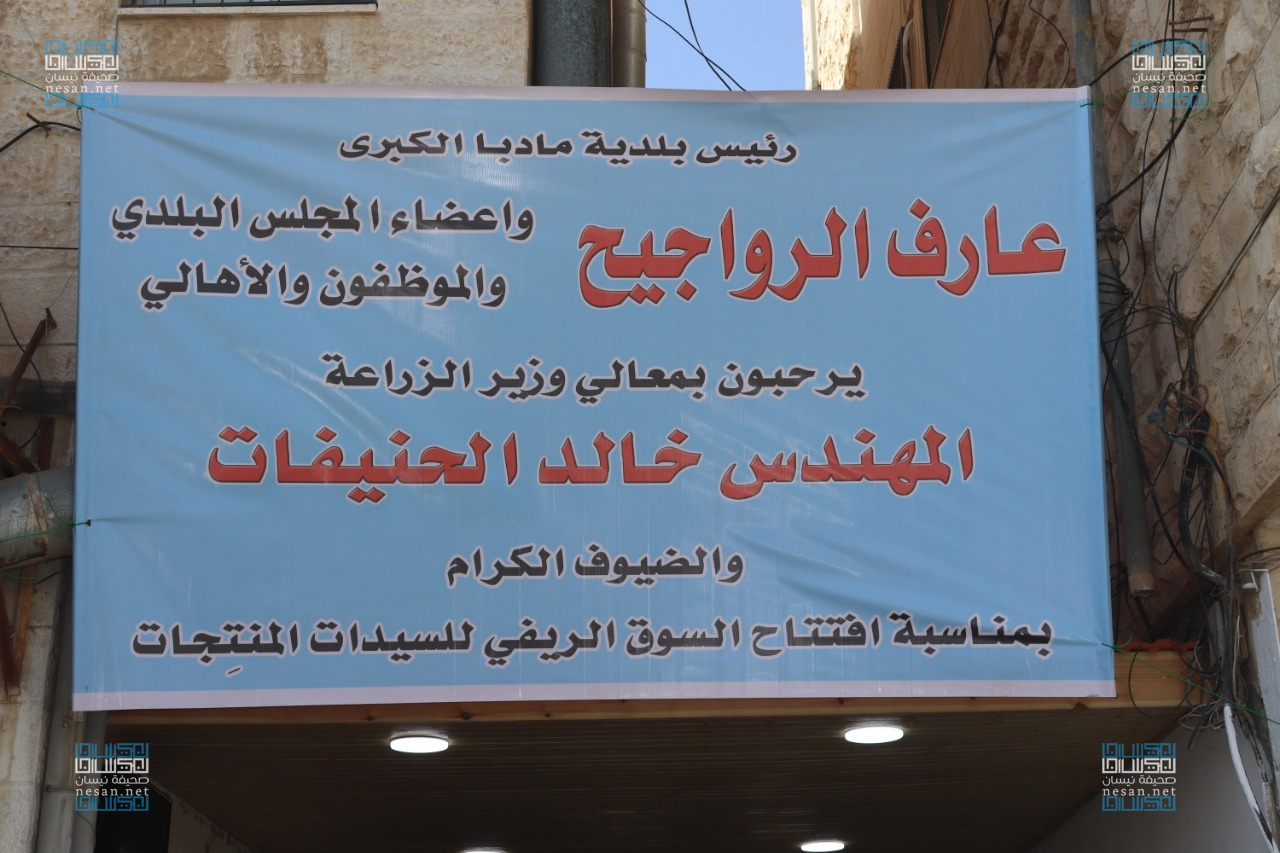 وافتتح الحنيفات في مبنى بلدية مادبا بازارا لتنمية الريفية تم تنظيمة من قبل البلدية وبالتعاون مع عدد من المؤسسات والجمعيات ويخدم عدد من الأسر المنتجة ويتيح الفرصة لتسويق المنتجات الزراعية المحلية أشار الحنيفات خلال الحفل الى ان التوسع في الرقعة الخضراء يعد أولوية لدى الوزارة، وذلك من خلال برنامج استدامة لهذه الجهود وان تكون عناصر الاستدامة من مياة ري ومتابعة وحماية متوفرة لنجاح هذه الزراعات